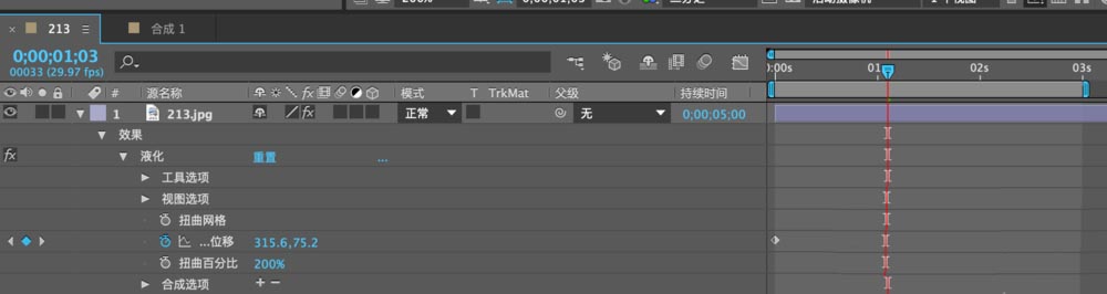 5、最后在扭曲网格位置的码表处打上关键帧,做动画效果即可。
