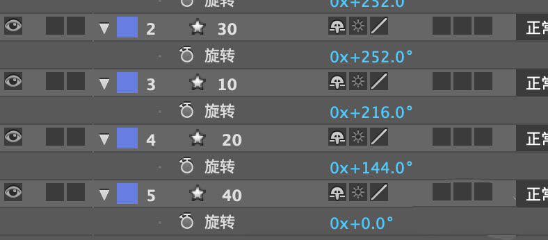 7、紧接着Ctrl+D,复制粘贴几个图层,分别输入20,10,30数值。