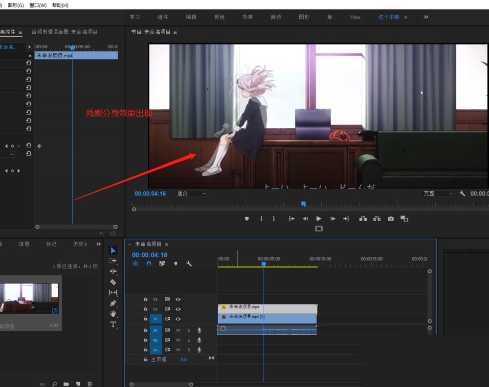 6、播放时间轴进行查看,可以看到一个残影分身的效果就出来了。
