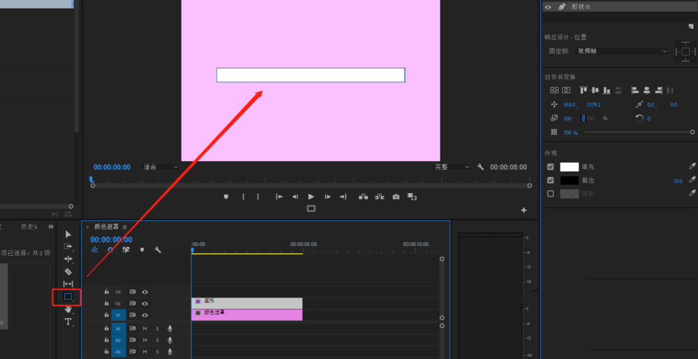 3、选中视频轨道2的矩形图形,在按住alt键来进行复制得到一个同样的矩形到视频轨道3.