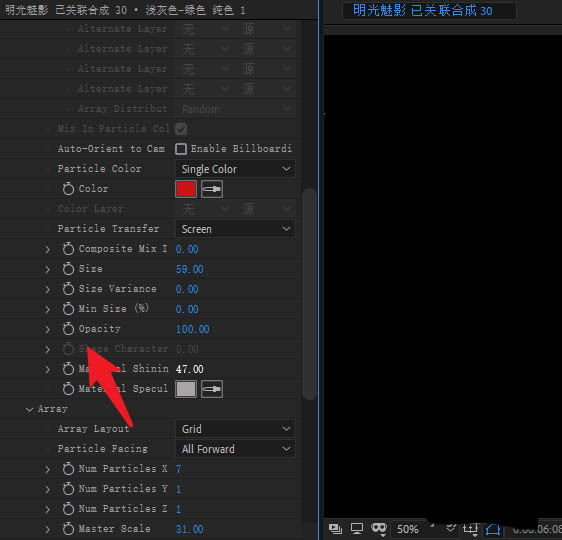 4、设置粒子的不透明度数值。