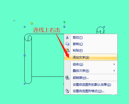 6、选定图形鼠标移至边线上右击,选添加文字,图形中输入文字。