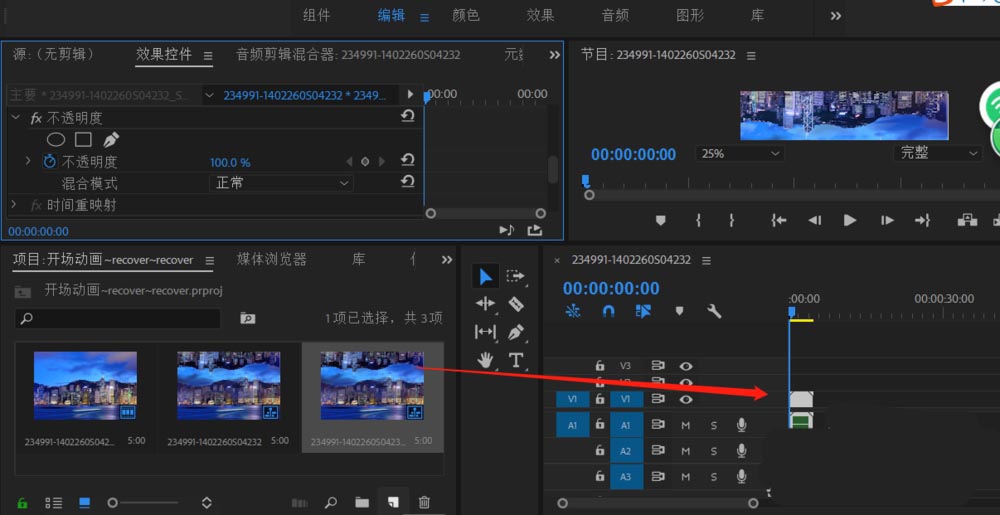 1、打开premiere,将素材导入到项目中,并将素材推至到视频轨道中,接着按住alt键复制一层素材