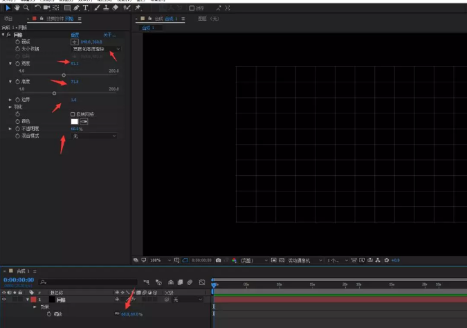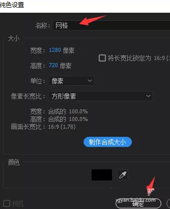 1、ctrl + n 新建一个合成,ctrl + y 新建一个纯色层,命名为“ 网格”