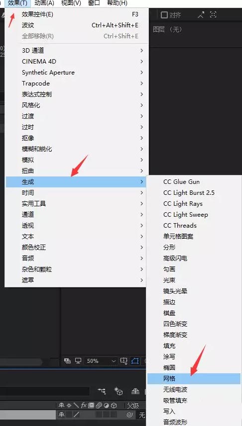 2、选择 效果 - 生成 -网格,制作网格背景