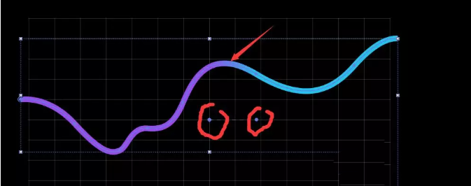 7、可以看到渐变不是很自然,可以将下图红圈圈起来的点往左右两端拖动,使过渡看起来更自然一些