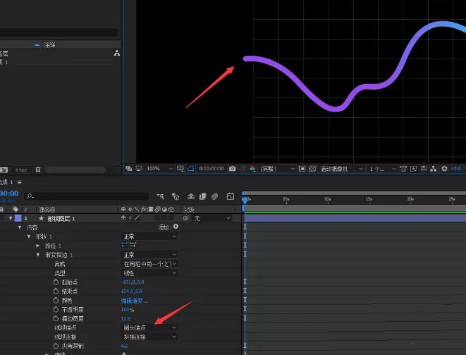 8、修改 线段端点为 ‘圆头端点’, 给起一个名字,叫曲线
