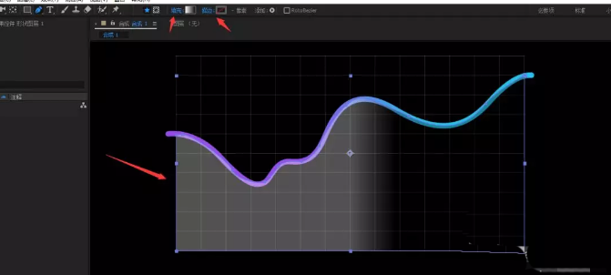 9、选择钢笔工具,填充设为渐变,不要描边,画一个下图所示的形状,制作曲线的渐变背景,可以适当降低图层透明度,方便观察
