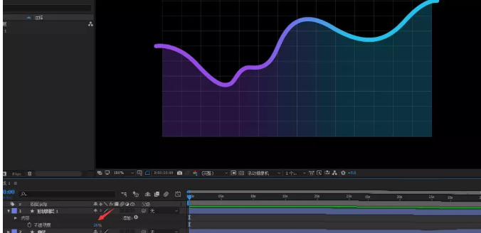 20、展开修剪路径, 给结束制作0-100的关键帧动画,时间根据需要自己设置,我这里差不多1秒多钟。 你还可以添加缓动效果,我这里就不做演示了