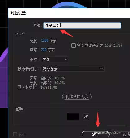 11、接下来我们给 ‘渐变背景’ 添加一个蒙版,让它底部透明。ctrl + y新建一个纯色层,命名为渐变蒙版