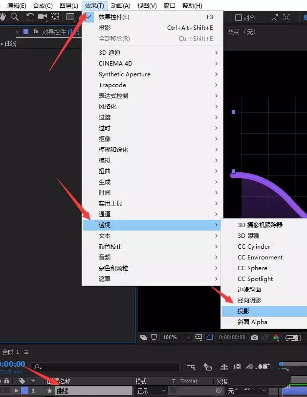 17、将曲线图层移动到顶部,添加投影效果