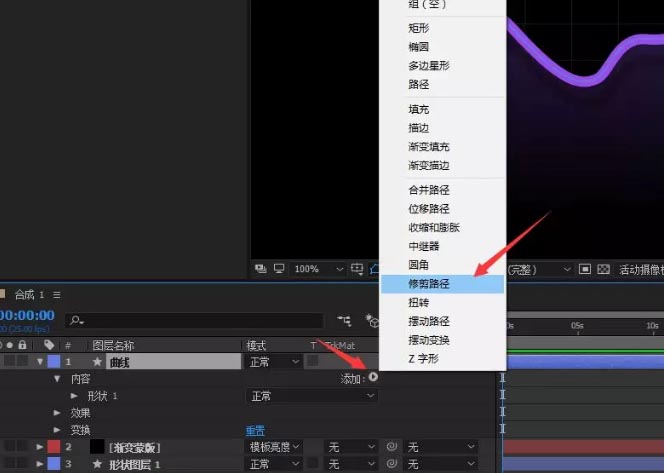 19、选择曲线图层, 添加 修剪路径,如下图
