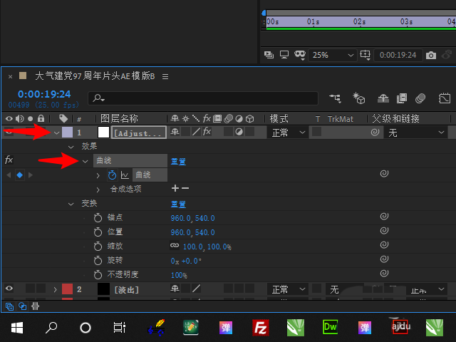 4、例如曲线效果,如果图层有效果的话,会在效果控件中显示出来,拖动曲线调整。