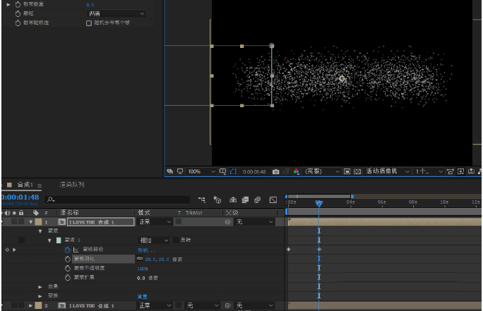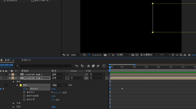 10、给蒙版路径加2个关键帧,为了自然加大蒙版羽化值,绕后导出