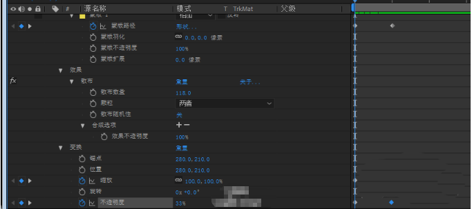 8、调整缩放和透明度,第一帧小不透明,第二针放大透明度高