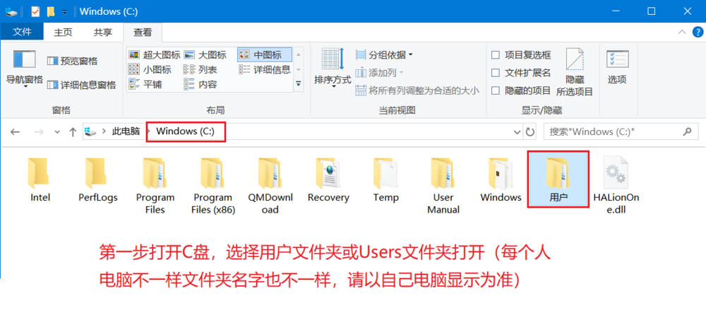 1、打开C盘,选择用户文件夹或Users文件夹打开