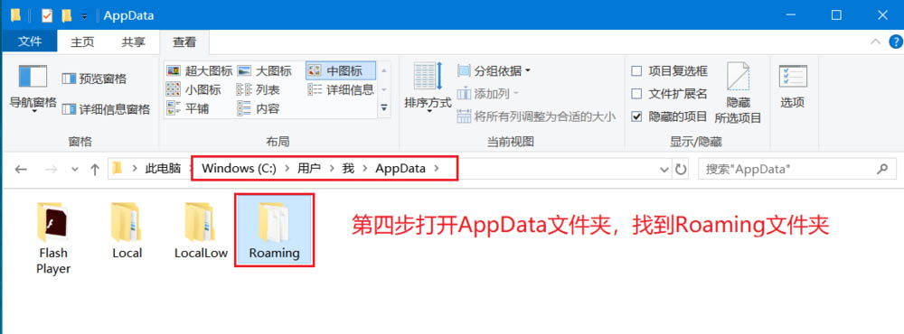 4、打开AppData文件夹,找到Roaming文件夹
