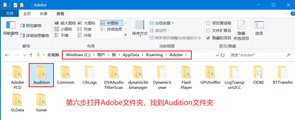 6、打开Adobe文件夹,找到Audition文件夹