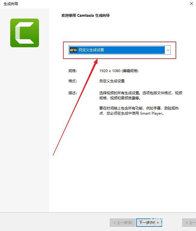 4、在弹出的窗口中点击“自定义生成设置”选项。