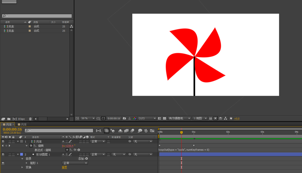 以上就是ae使用loopout表达式制作一个旋转的风车动画的教程,希望大家喜欢,请继续关注脚本之家。