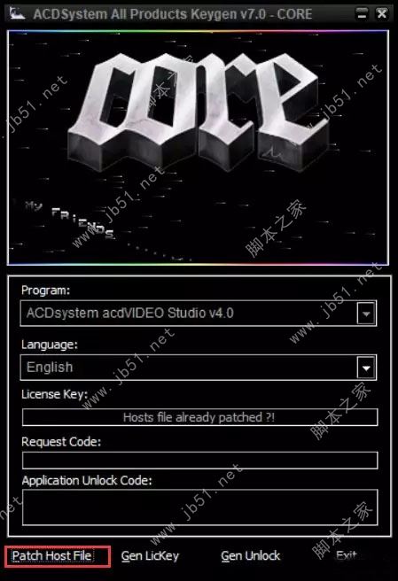 在注册机界面点击“patch host file”屏蔽主程序联网;