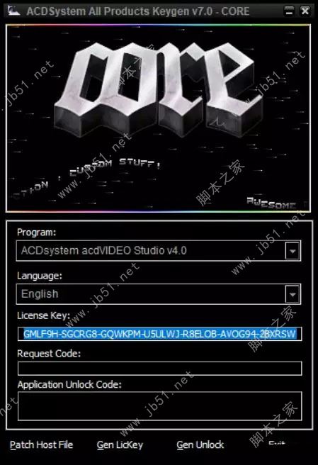 注册机“Program”选择Video Studio v4.0,”language”选择英文,单击“Gen Lickey ”生成密钥,并复制密钥。