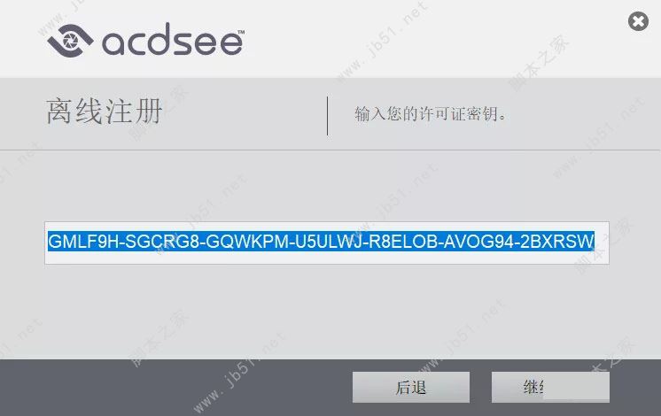 将注册码输入到断网激活界面,点击继续。如图