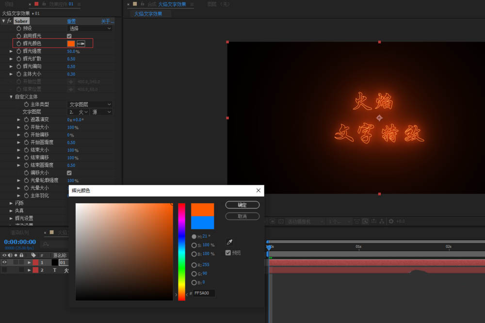1、前面小编分享了已经出现了霓虹灯的效果,我们可以将颜色修改成我们想要的颜色,火焰色;