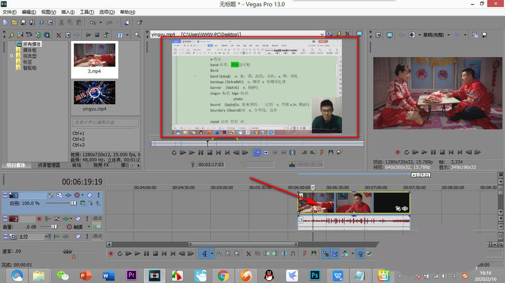6、这样视频就覆盖在下方的视频中了,并且直接覆盖不需要再添加视频轨道,覆盖之后视频的长度不变。