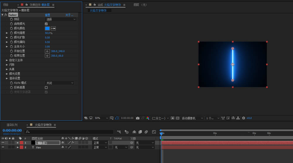 4、选中载体层,添加saber;效果-video copilot-saber;