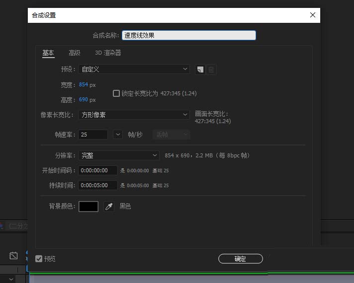 1、打开AE软件,命名速度线效果,调整相应的参数。