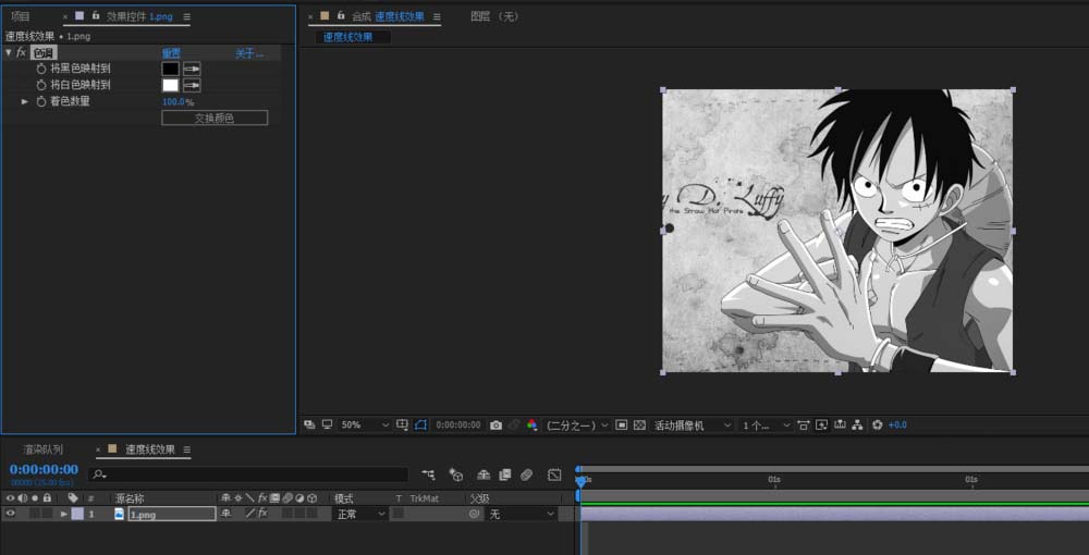 2、ctrl+i导入事先准备好的漫画图片素材,并把图片素材拉入时间线面板里面;给图片素材添加Tint色调效果,将图片素材调整至黑白效果;(漫画给人的第一 印象就是黑白效果,哈哈哈)