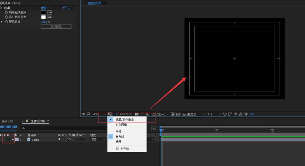3、先将图片素材前面的小眼睛关闭掉,打开字幕安全框;
