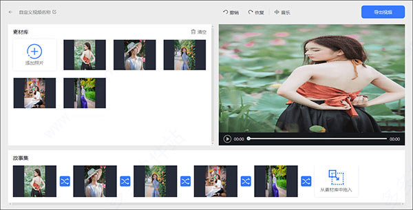 【创建自定义视频】功能可从头到尾由用户自由编辑照片的排列顺序、切换效果、背景音乐,自定义生成全新视频。