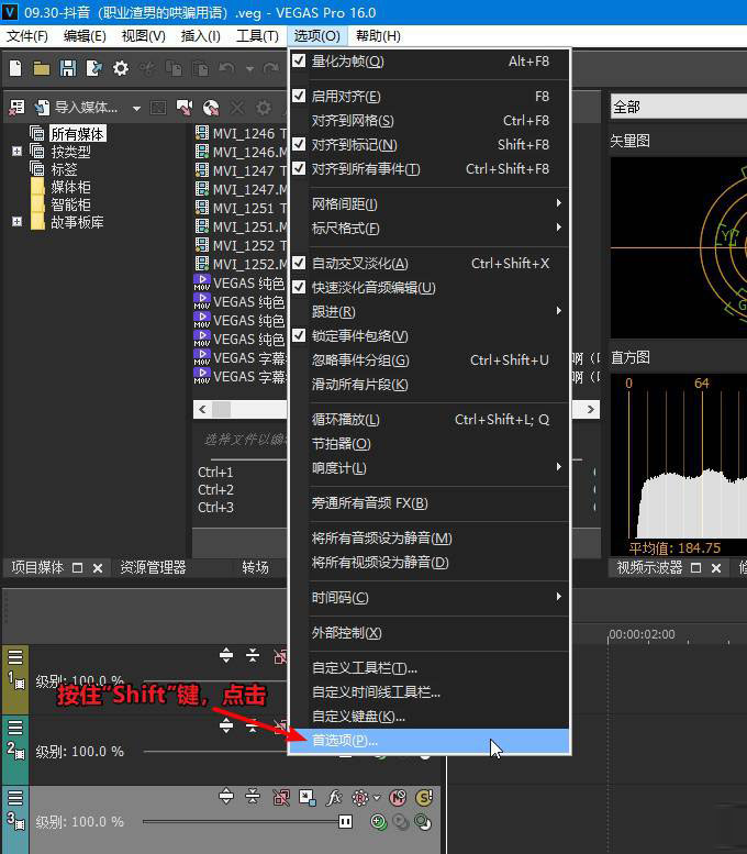 一、打开软件,按住键盘上的“shift”键的同时,并点击软件菜单栏的“选项”→“首选项”,打开“首选项”面板,如下图所示: