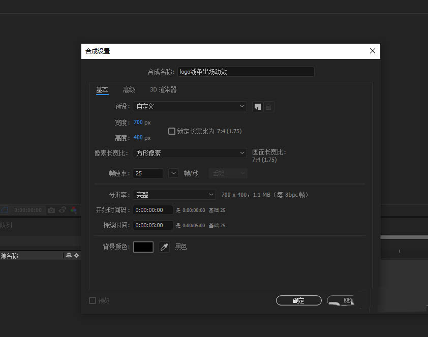 1、打开AE软件,命名logo线条出场动效,调整相应的参数。