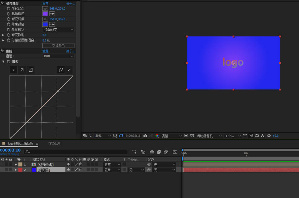 5、ctrl+y新建一个纯色层,命名为背景层;添加梯度渐变;径向渐变,调整想要的颜色,也可以添加曲线来进行进一步的调整;