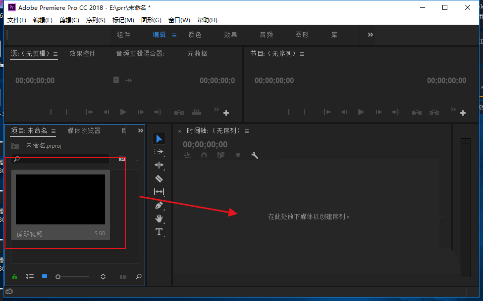 5、创建好透明视频之后,拖放到时间轴。