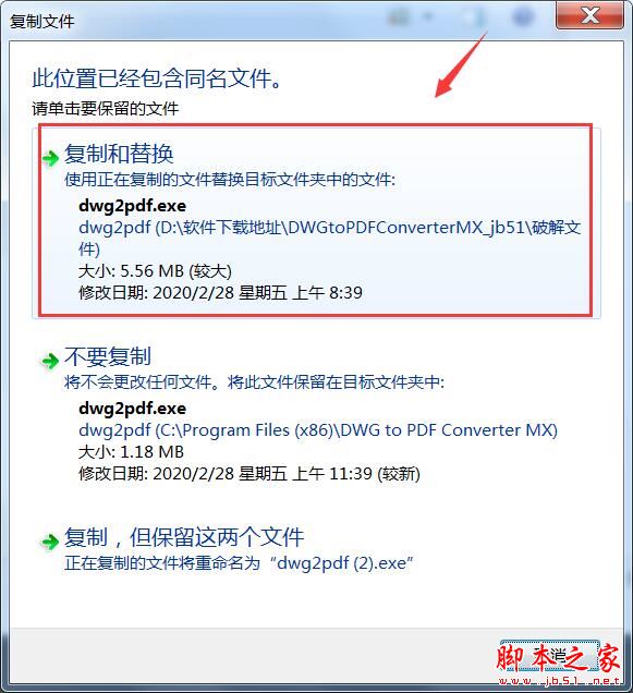 8、将软件包内的破解文件夹里dwg2pdf.exe粘贴到软件安装目录里(默认C:\Program Files (x86)\DWG to PDF Converter MX)