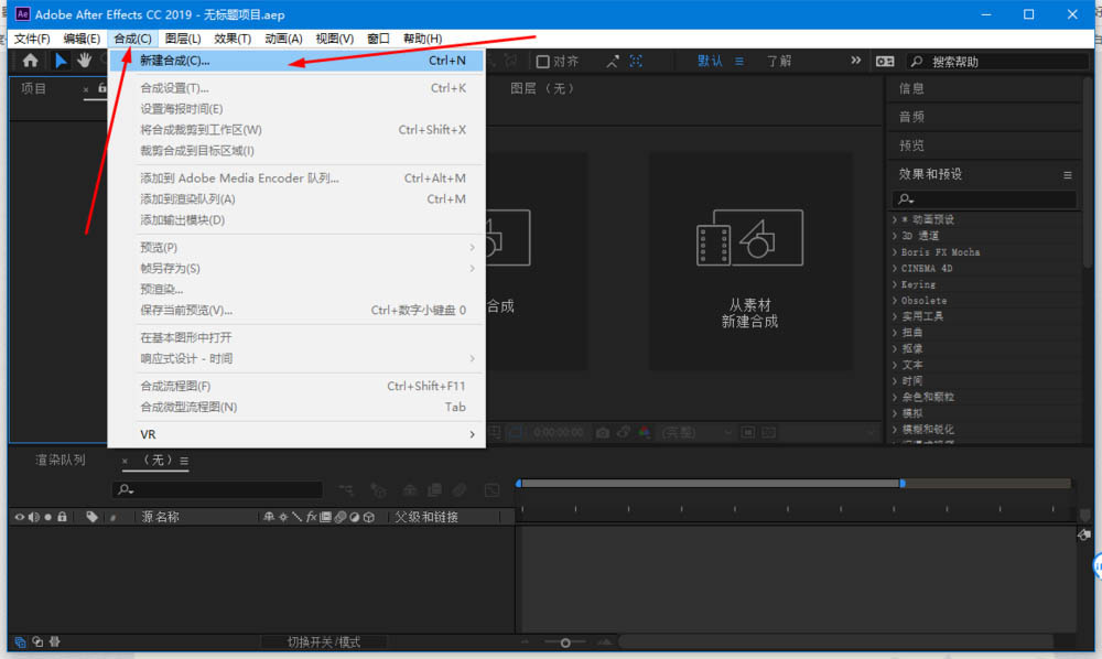 1、打开AE,单击合成→新建合成