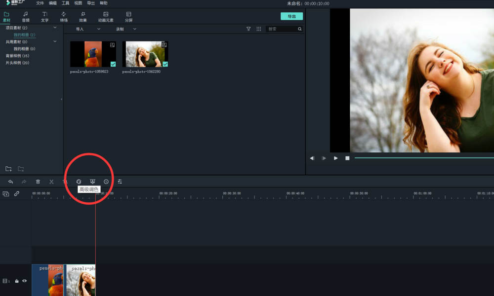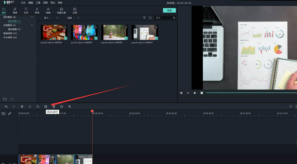 2、然后点击高级调色图标。