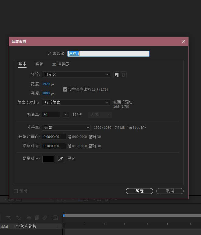 2、为新的合成命名易于理解的名字,点击确定