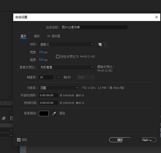 1、打开AE软件,新建合成,命名图片过渡效果,调整相应的参数。