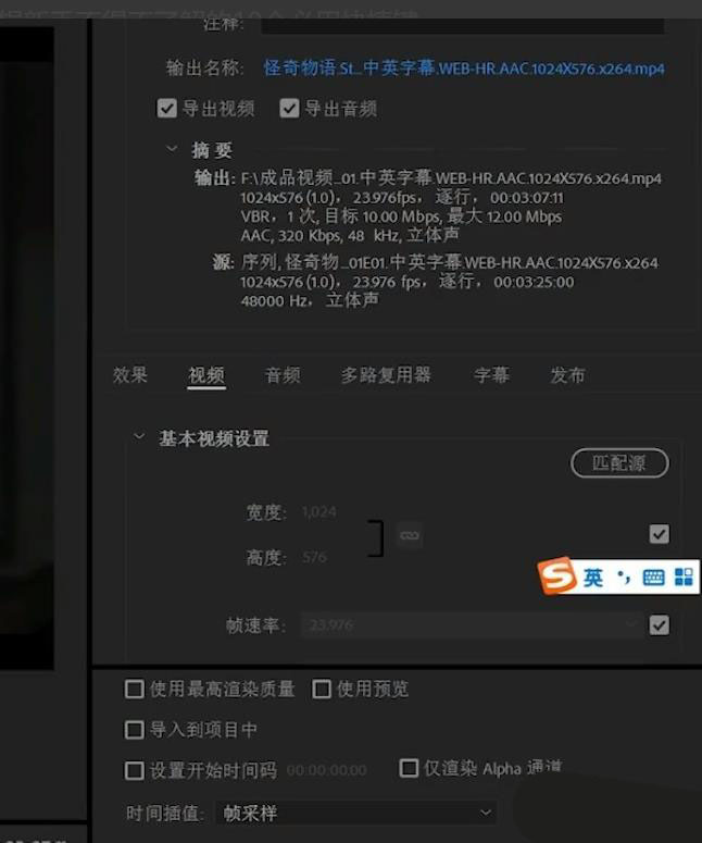 在你完成标记视频的出入点之后呢?最后一步,我们可以按住ctrl+m,然后就可以导出视频了。