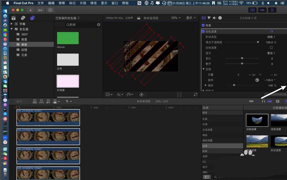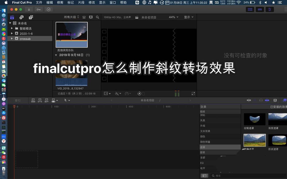 有个斜纹转场效果在剪辑中用到,那么在finalcut怎么制作斜纹转场效果的呢?今天我们就来看看finalcutpro转场特效视频的制作方法。