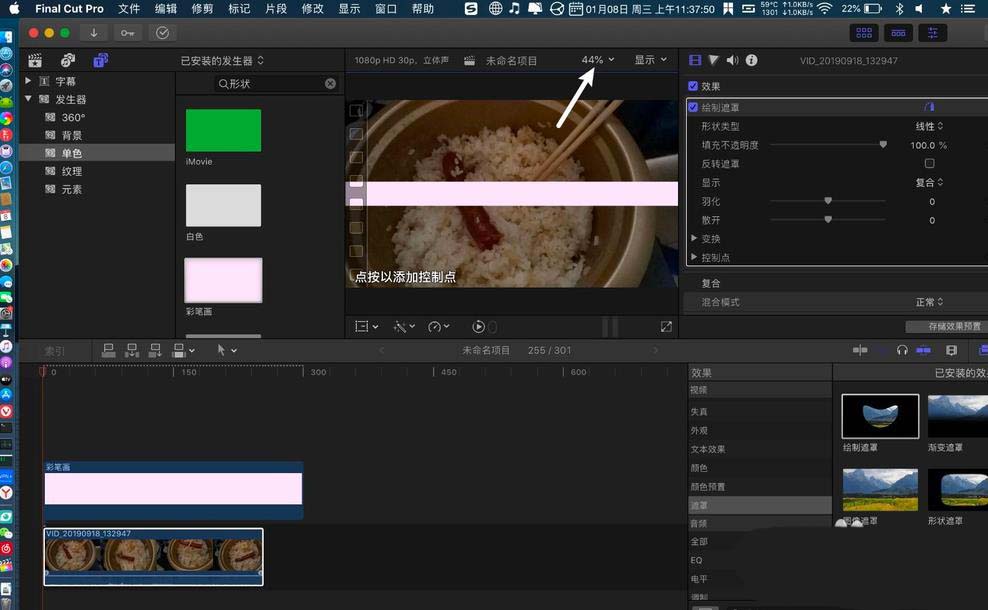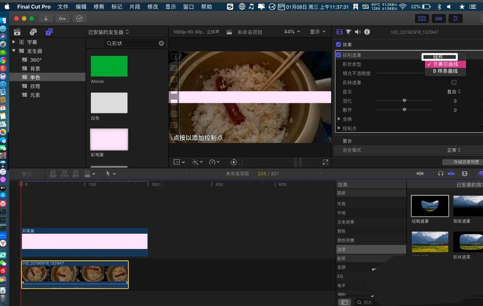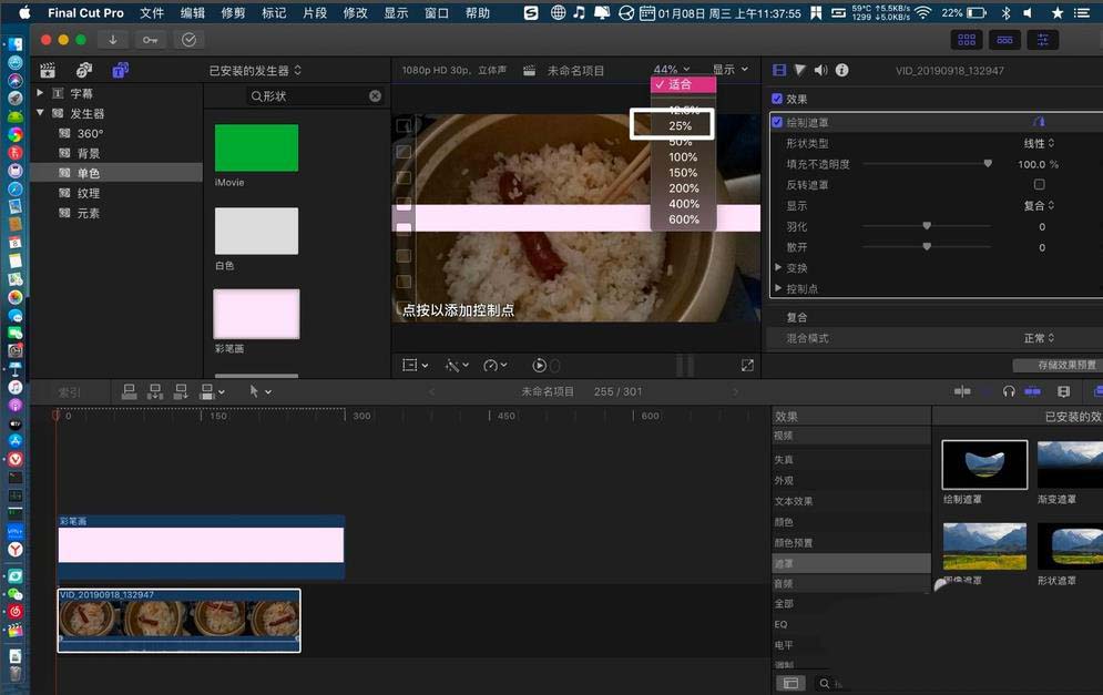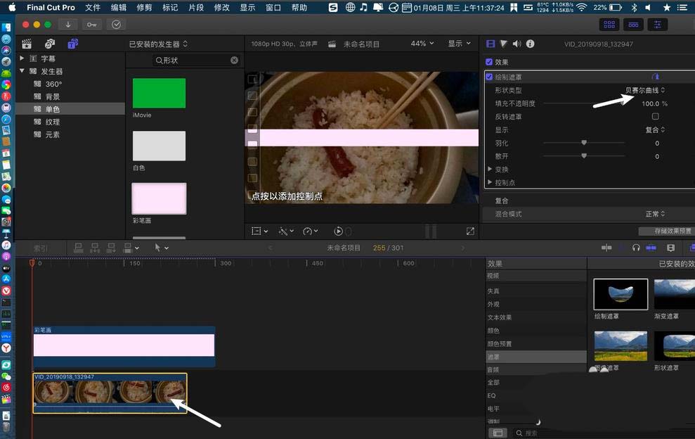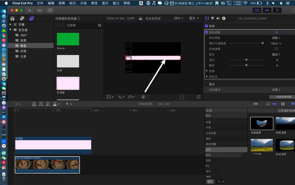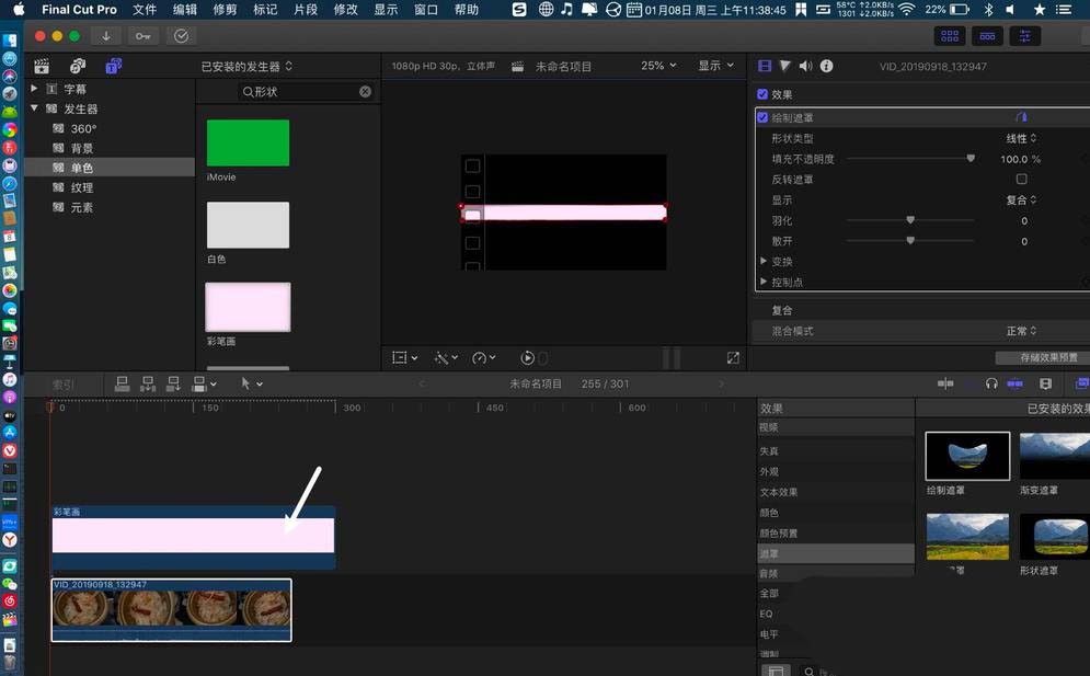5、效果我们选遮罩,把绘制遮罩呢加到素材上。