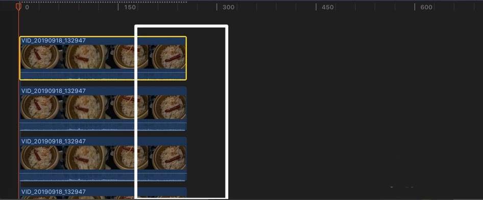 16、然后把播放头线往右侧移,移到图二的类似位置,就是转场结尾处。