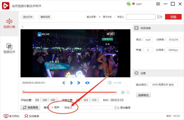 使用金舟视频分割合并软件替换视频原声的方法