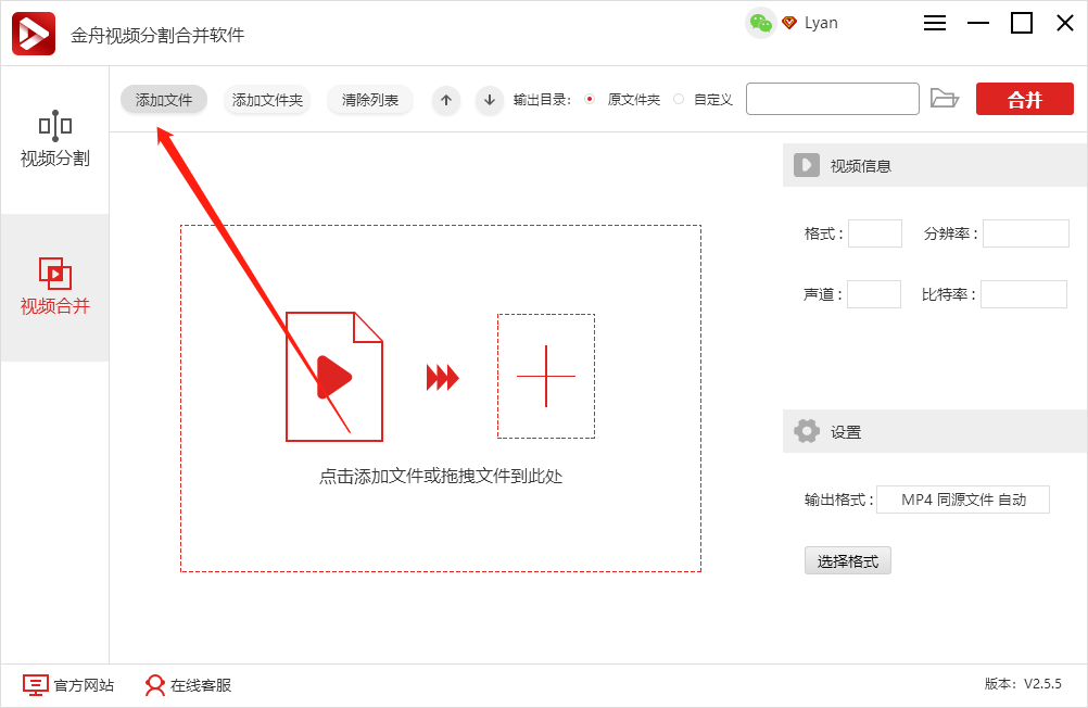 第二步、然后点击“添加文件”,就可以添加想要合并的视频文件了。
