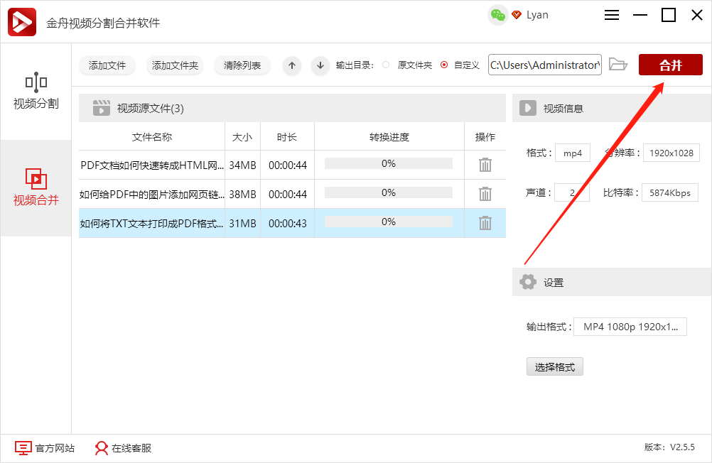 使用金舟视频分割合并软件将多个视频合并的方法介绍